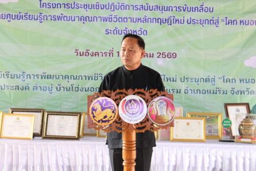 วันอังคารที่ 10 มีนาคม 2569 ณ ศูนย์เรียนรู้การพัฒนาคุณภาพชีวิตตามหลักทฤษฎีใหม่ ประยุกต์สู่ “โคก หนอง นา” (แปลงนายประสงค์ คำอยู่) บ้านโฮ่งนอก หมู่ที่ 10 ตำบลแม่แรม อำเภอแม่ริม จังหวัดเชียงใหม่ นายรัฐพล นราดิศร ผู้ว่าราชการจังหวัดเชียงใหม่ ได้มอบหมายให้ นายบุญลือ ธรรมธรานุรักษ์ รองผู้ว่าราชการจังหวัดเชียงใหม่ ให้เกียรติเป็นประธานเปิด “โครงการประชุมเชิงปฏิบัติการสนับสนุนการขับเคลื่อนเครือข่ายศูนย์เรียนรู้การพัฒนาคุณภาพชีวิตตามหลักทฤษฎีใหม่ ประยุกต์สู่ โคก หนอง นา ระดับจังหวัด”